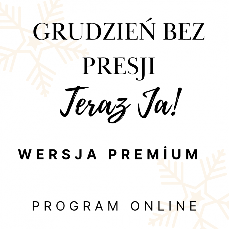 Program „Grudzień bez presji – Teraz Ja!” został stworzony dla kobiet, które tym razem chcą przejść przez grudzień inaczej. Spokojnie, w sowim rytmie, z oddechem, z czasem na i dla siebie. To program, który pozwala zatrzymać się, odetchnąć i odzyskać siebie – bez presji, bez ocen, bez konieczności bycia „na czas”.
